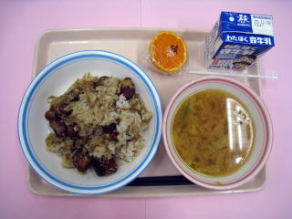 きんぴらご飯・ぜんざい・七草汁・牛乳