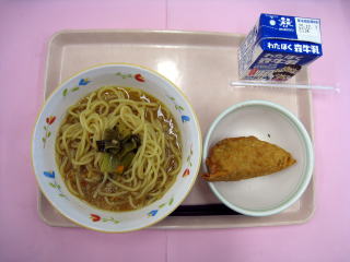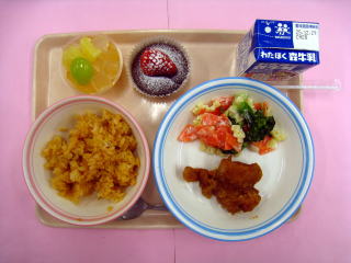 ・トマトつけめん・鶏のから揚げ・さくらんぼ(2粒)・牛乳