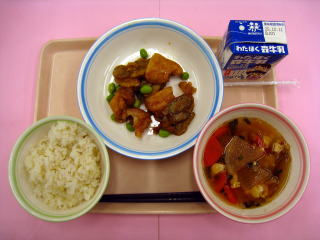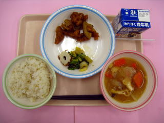麦ご飯・チキンごぼうごぼう・彩けんちょう・牛乳