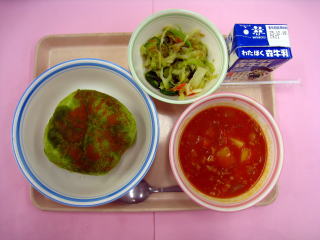・狭山茶揚げパン・夏野菜のレモンサラダ・むぎむぎスープ・牛乳