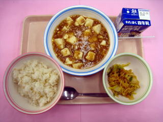 麦ご飯・和風麻婆豆腐・切り干し大根のハリハリ漬け・牛乳