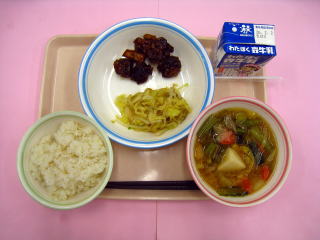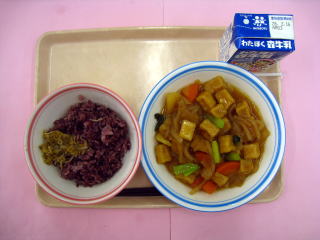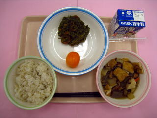 黒米ご飯・白菜ちりめん・高野豆腐とじゃがいもの煮物・牛乳
