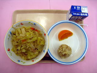 野菜たっぷりちゃんぽん・手作りジャンボ焼売・せとか・牛乳