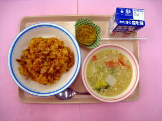 変身ピラフ・いかのマリネ・牛乳
